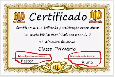 A emissão de certificados pode ocorrer em ocasiões especiais, como ao final de um trimestre, semestre ou ano letivo, ou após a conclusão de cursos específicos oferecidos pela EBD, como discipulado, introdução aos Evangelhos ou estudos sobre temas bíblicos. Esses certificados, além de formalizarem a conclusão de um período de aprendizado, servem como incentivo e motivação para a continuidade nos estudos da Palavra de Deus.
